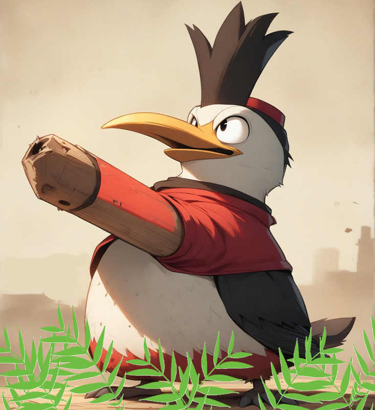 Не спрашивайте, что за дрын торчит у дятла из груди. Это ИИ сотворил на мой запрос нарисовать старого противного дятла.))